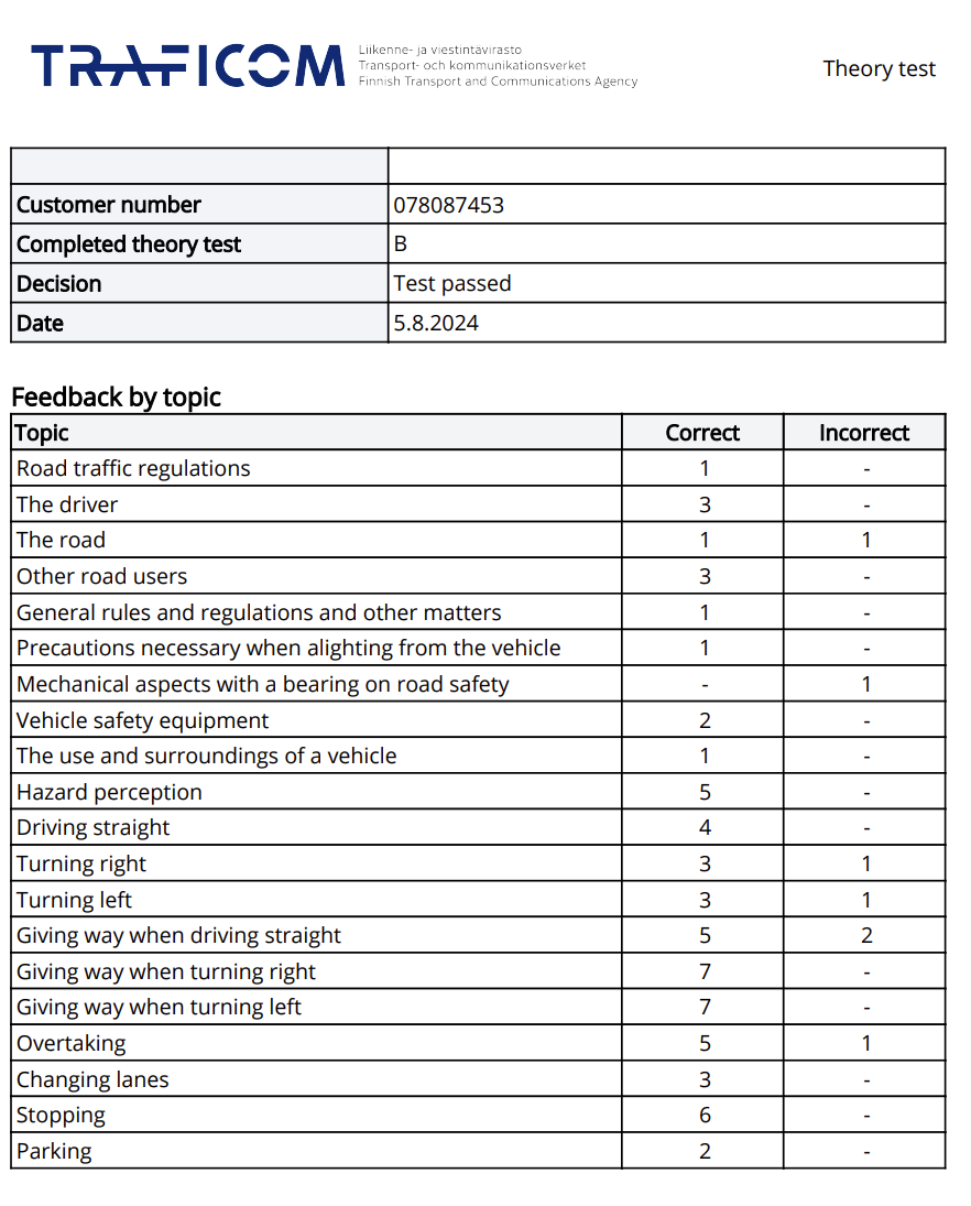 A few weeks ago I booked a test appointment at Ajovarmantoimisto but I couldn't take it because I messed up my reservation on their website. So they refunded me and booked another test today.